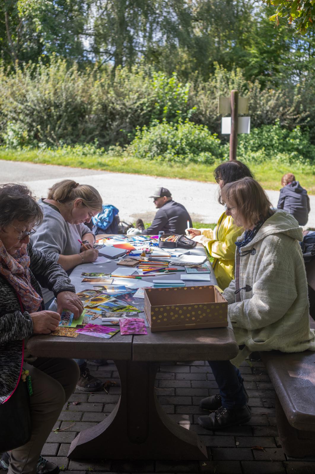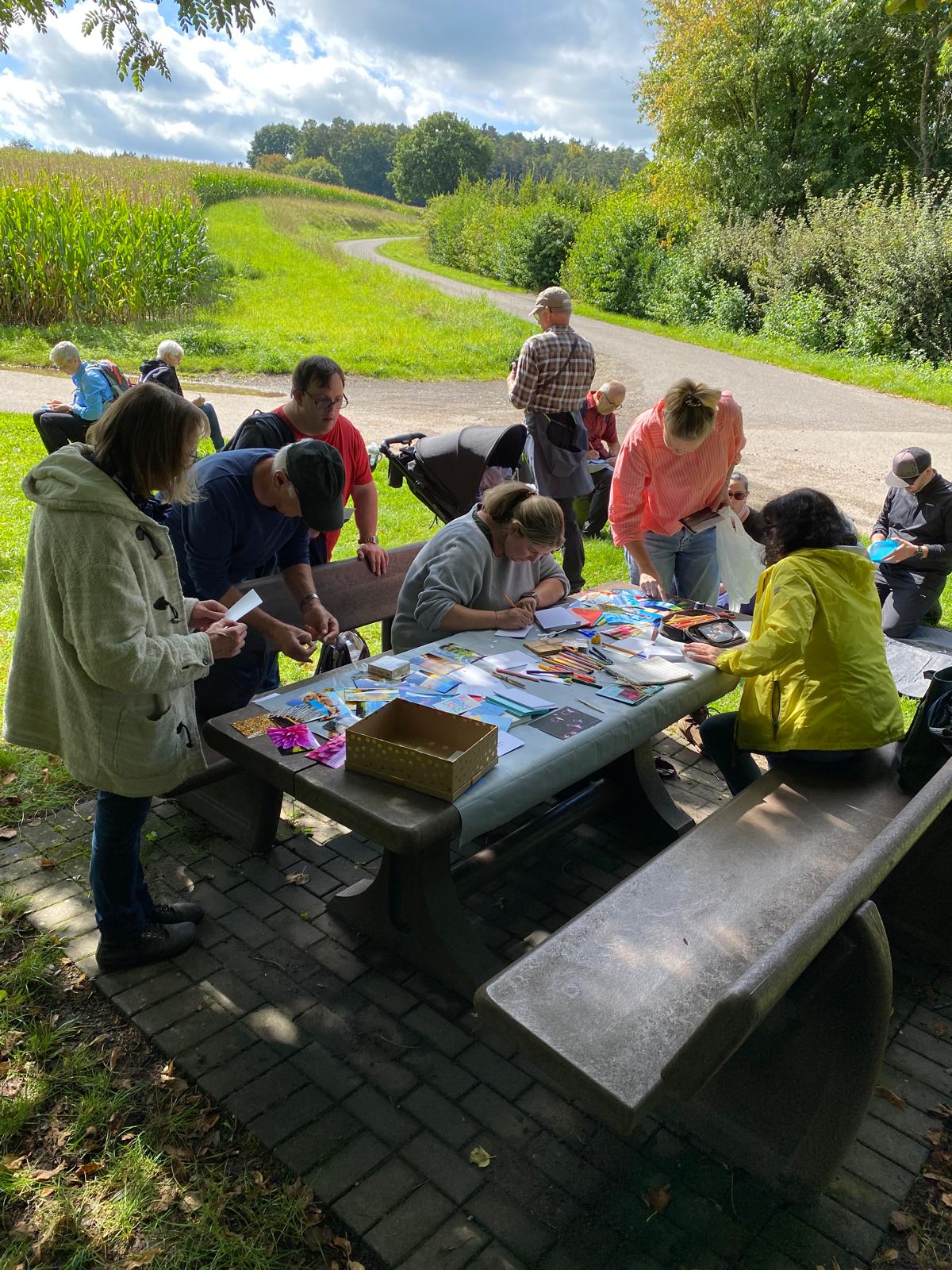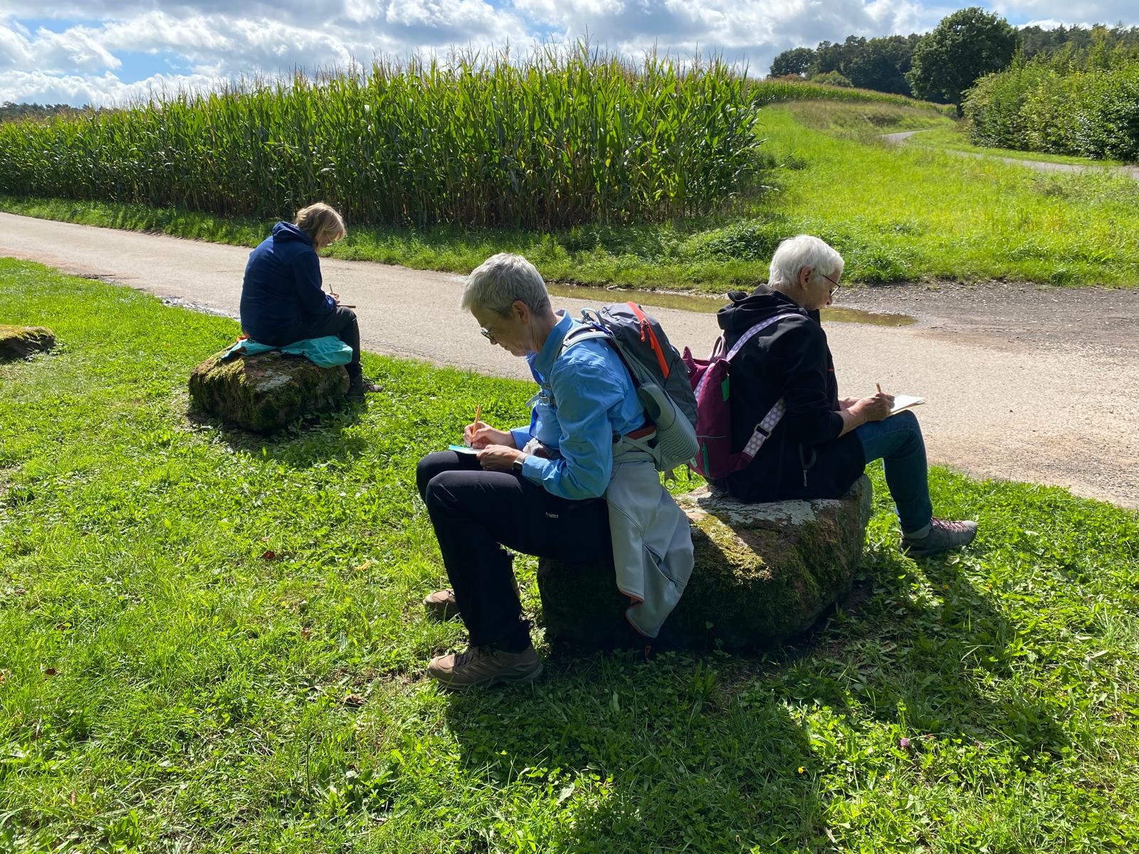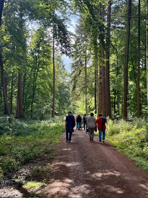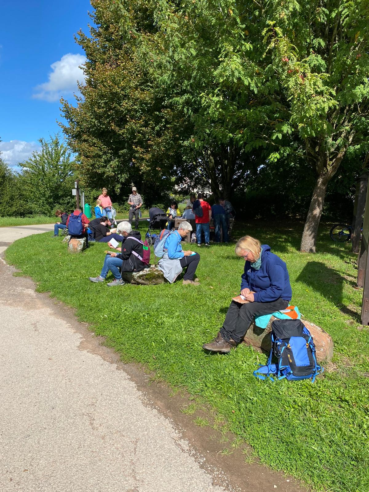 Wir treffen uns am Aussichtsturm Rodt und wandern etwa 5 km auf kinderwagentauglichem Weg. Unterwegs machen wir eine Pause und lassen uns unseren selbst mitgebrachten Rucksackproviant schmecken.